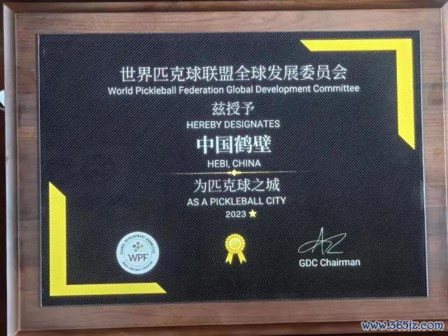 世界匹克球联盟授予鹤壁「匹克球之城」的称号,图源:河南省体育局
