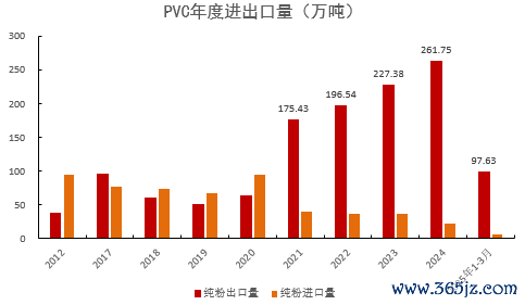 25年3月出口环比增加。3月PVC出口36.63万吨,环比增11%。