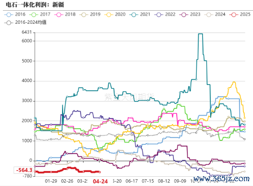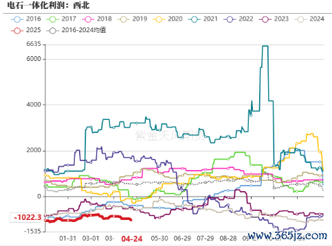 电石一体化亏损增加。新疆一体化利润-564元/吨。西北一体化利润-1022。