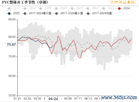电石供应下滑。电石开工降0.99个百分点至71.88%,整体开工中偏低。