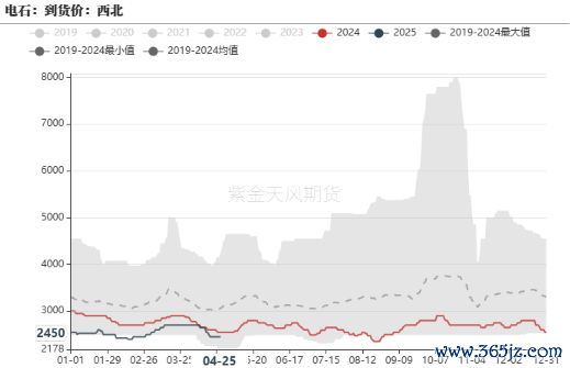 电石价格小幅下跌。乌海电石2450元/吨,较上周降50。
