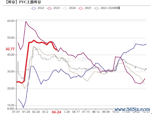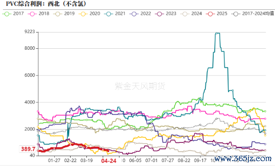 利润:中性偏多 单PVC利润低位,综合利润分化。电石一体化吨利-1022元,山东外购电石法吨利-1043元;华北乙烯法利润529元/吨。西北综合利润390元/吨,华北综合利润-333元/吨,双吨价差2939元。