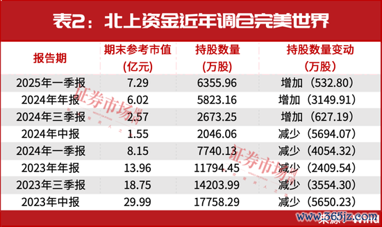 另外值得一提的是网上炒股,完美世界是北上资金的长期跟踪布局标的,且有多轮调仓周期,2023年中报~2024年中报为减仓状态,期间,完美世界股价多为调整。2024年三季报~2025年一季报已经连续3个季度增仓(见表2),期间完美世界的股价则也同步开启了新一轮周期上涨。